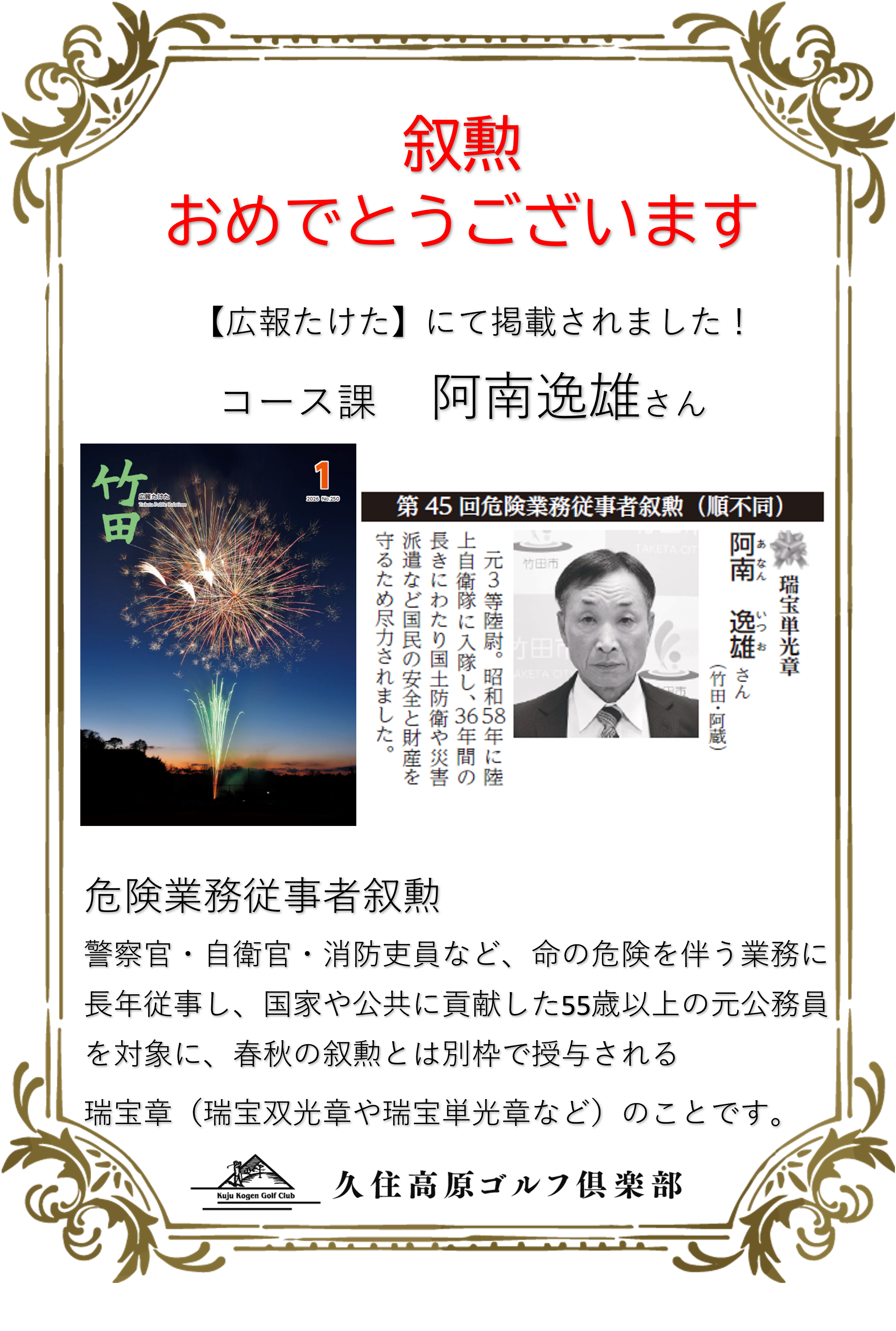 弊社への入社前に陸上自衛隊に所属していた従業員が、この度「第45回危険業務従事者」を受章いたしました。